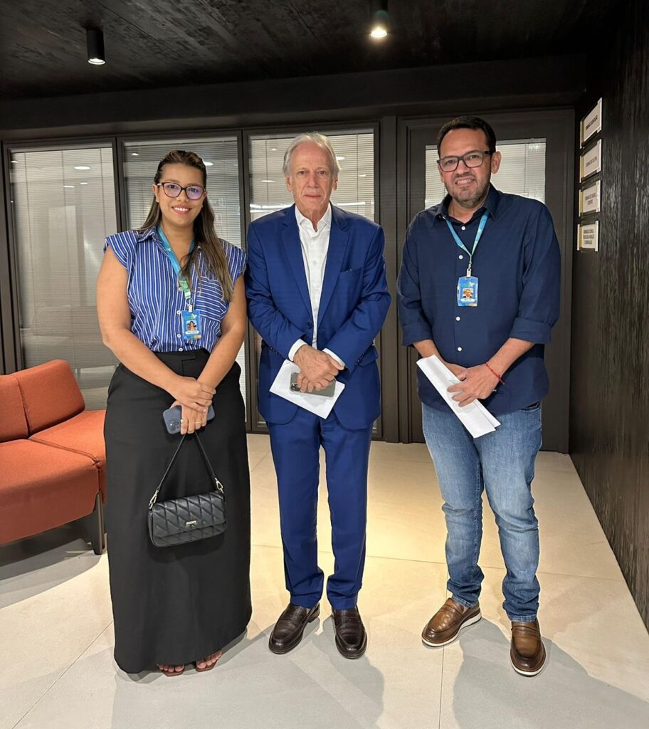 Rebeca Mendes (assessora jurídica da ACBM), Paulo Roberto (presidente da Norte Energia) e Hiran Júnior (secretário executivo da ACBM).