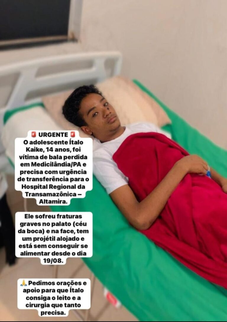 Um adolescente de 14 anos, identificado como Ítalo Kaike, foi vítima de uma bala perdida durante uma tentativa de homicídio contra outra pessoa, ocorrida por volta das 19h30 da última terça-feira, 19 de agosto, em um posto de combustível de Medicilândia, no sudoeste do Pará.