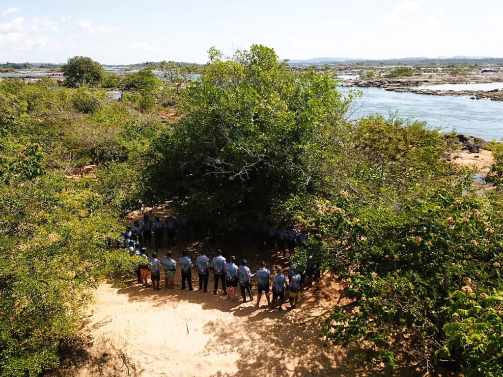 A partida ocorreu na rampa do Xingu Praia Clube, onde os participantes se reuniram para uma oração coletiva e receberam orientações da coordenação. Em seguida, seguiram em voadeiras por um trajeto de aproximadamente três horas rio acima, navegando por paisagens deslumbrantes às margens do Rio Xingu até o ponto de acampamento.