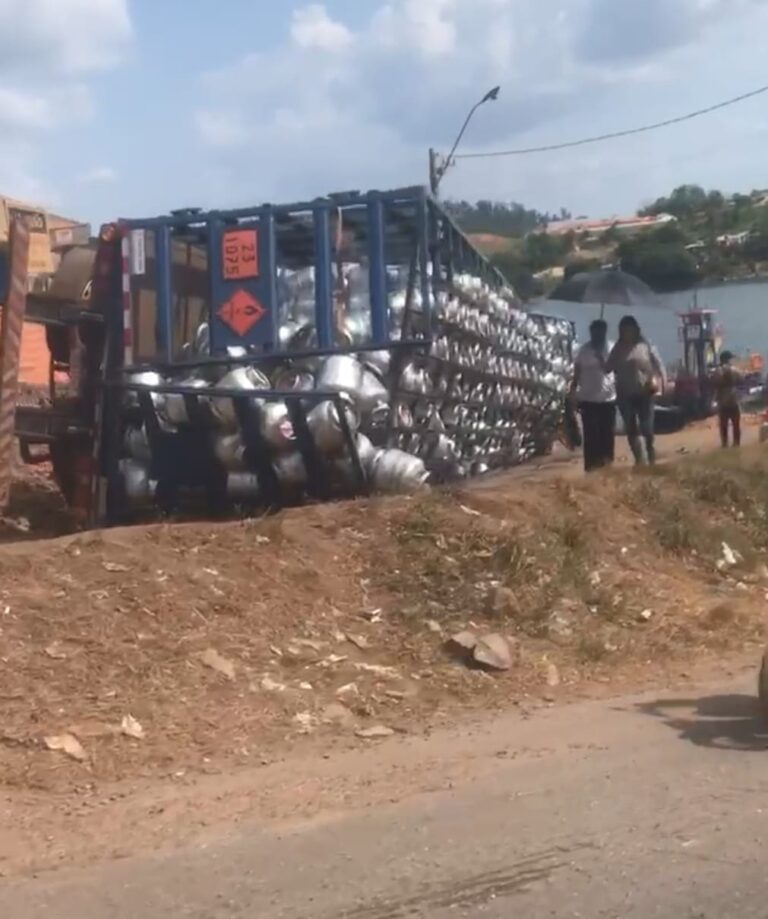 De acordo com informações preliminares, o veículo seguia no sentido de Altamira quando apresentou problemas nos freios. O motorista perdeu o controle da direção, e a carreta acabou tombando às margens da rodovia. Com o impacto, dezenas de botijões ficaram espalhados pelo local.