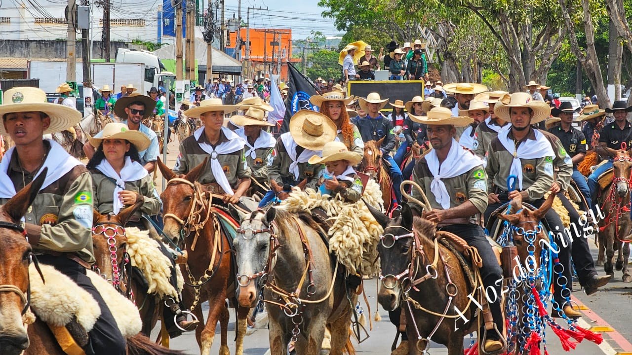 Homens e mulheres de diferentes comunidades rurais e bairros da cidade se reuniram logo cedo no Anel Viário, ponto de partida do trajeto que percorreu as principais vias do centro até o Haras do Wanderlan — um percurso de aproximadamente 7 quilômetros.