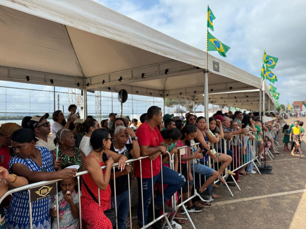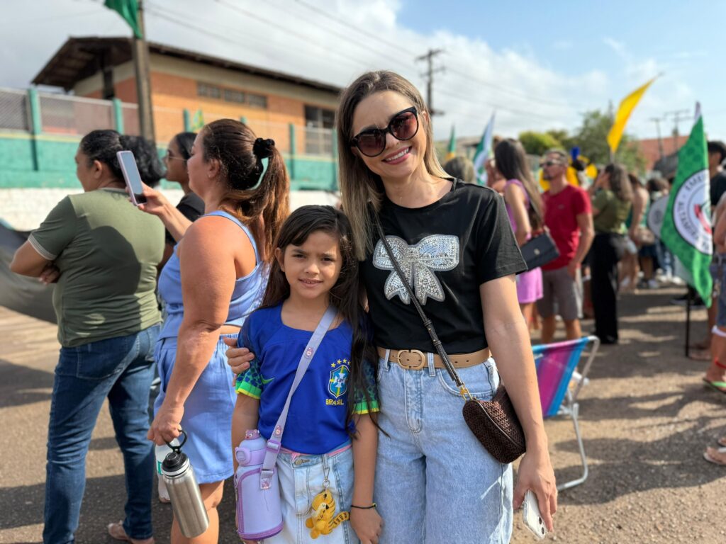 Famílias inteiras se espalharam pela Orla desde cedo para garantir um bom lugar. Selma Monteiro, nail designer, levou a filha para assistir ao desfile pela primeira vez. Foi uma bênção. Cheguei cedo, vi várias apresentações e está tudo lindo. Muita gente prestigiando. Não poderíamos deixar de participar. Quero que minha filha cresça valorizando essa cultura tão bonita do nosso país. O 7 de Setembro tem um significado enorme, e a gente precisa manter viva essa tradição”, afirmou.
