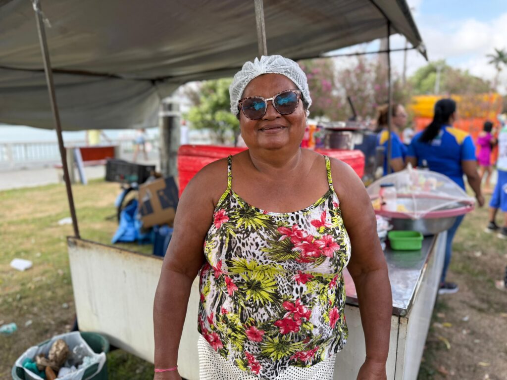 Diante do grande fluxo de pessoas, os vendedores ambulantes preparam cedo as mercadorias deles e partiram rumo a Orla em busca de garantir uma renda extra. Foi o caso de Maria Cristina, vendedora ambulante há 18 anos. Estávamos há cinco anos sem desfile. Antes, o 7 de Setembro na Orla era vazio, sem nada. Agora voltou com força. O movimento foi ótimo, vendi bem e garanti o dinheiro do feijão”, brincou a moradora do bairro Colinas.