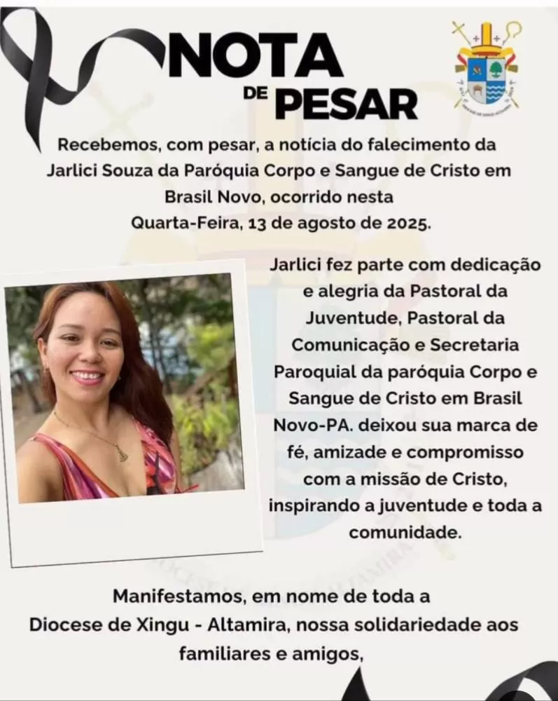Jarlíci era secretária da Paróquia Corpo e Sangue de Cristo e atuava ativamente na Pastoral da Juventude, sendo reconhecida por sua alegria, dedicação e fé. Sua trajetória inspirava jovens e fortalecia a união da comunidade católica. A Diocese de Xingu-Altamira emitiu nota de pesar, pedindo orações pelo descanso eterno da jovem e conforto aos familiares e amigos.