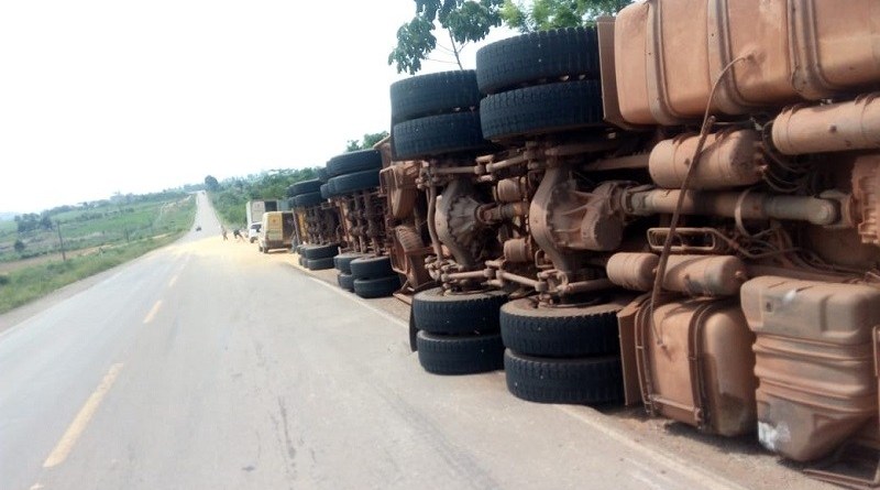 Na manhã desta sexta-feira (8) na Rodovia BR- 163, próximo ao aeroporto no município de Novo Progresso, um caminhão M.Benz, Actros, da cidade de Rondonópolis, Estado do Mato Grosso, carregado com 37 toneladas de milho, tombou após o motorista perder o controle do veículo.