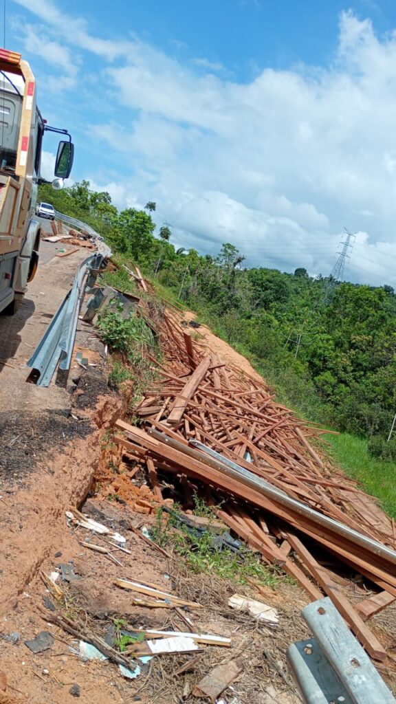 Com o acidente, a carga de madeira ficou espalhada sobre a rodovia, provocando a interdição parcial da BR-230 por algumas horas, até que o material fosse retirado da pista e o caminhão guinchado. A cabine do veículo ficou parcialmente destruída.