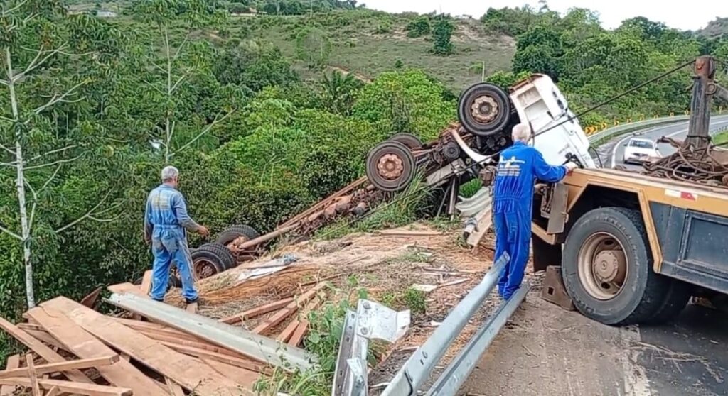 De acordo com informações repassadas pelo motorista, o veículo havia saído de Uruará (PA) com destino a Salvador (BA). Ao passar pelo local, o caminhão apresentou falhas mecânicas, fazendo com que o condutor perdesse o controle da direção. O veículo acabou tombando na lateral da pista e, por pouco, não caiu em uma ribanceira.