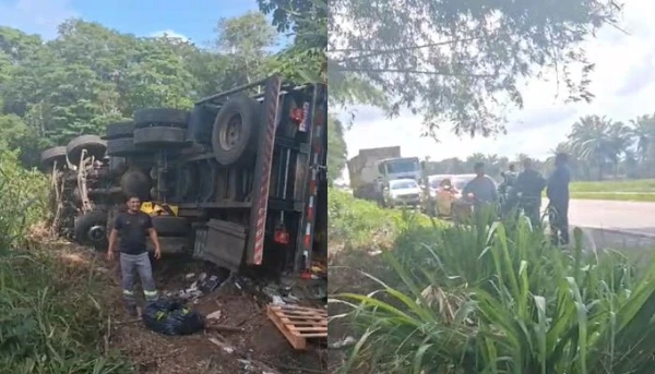 Um caminhão que transportava uma grande carga de bananas tombou na manhã desta quarta-feira (15/10) na BR-316, próximo à comunidade de Areia Branca, entre os municípios de Castanhal e Santa Izabel do Pará, na Região Metropolitana de Belém.