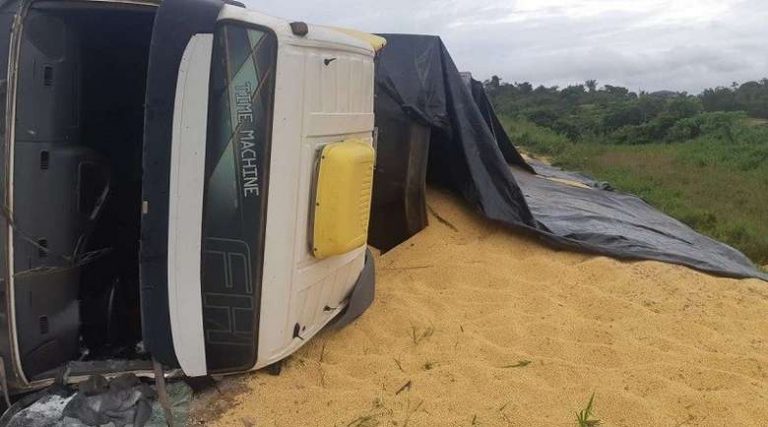 Um caminhão que transportava soja tombou na BR 163, a 7 km da cidade de Novo Progresso, no sudoeste do Pará. O acidente bloqueou parte da pista. O motorista teve escoriações pelo corpo.