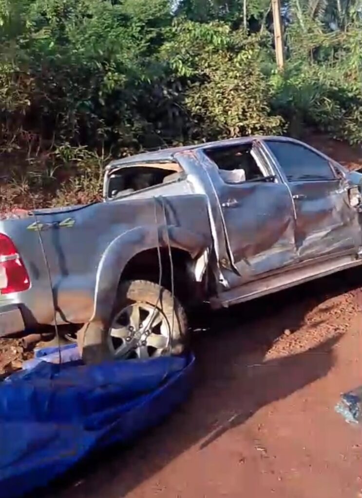 De acordo com informações preliminares, o acidente ocorreu no momento em que uma caminhonete Toyota Hilux tentou realizar uma ultrapassagem a um caminhão baú. Durante a manobra, o motorista teria perdido o controle da direção, fazendo com que o veículo capotasse às margens da rodovia. Com o impacto, a caminhonete ficou completamente destruída.