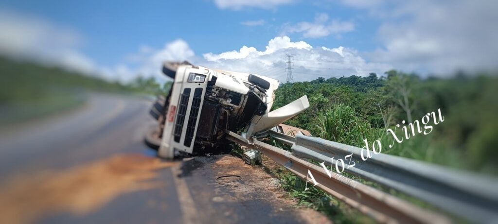 Uma carreta carregada de amêndoas de cacau tombou na BR-230, Rodovia Transamazônica, na noite desta quinta-feira (29.jan.2026), na altura da ladeira do Cigano, no município de Vitória do Xingu, no sudoeste do Pará. O acidente foi registrado por volta das 21h.