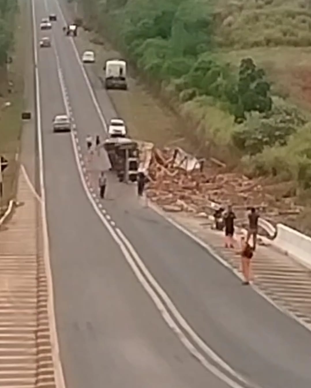 O motorista da carreta sofreu apenas escoriações leves e não precisou de atendimento médico de urgência. Parte da carga de madeira ficou espalhada na lateral da pista, mas o trânsito não chegou a ser totalmente interrompido.
