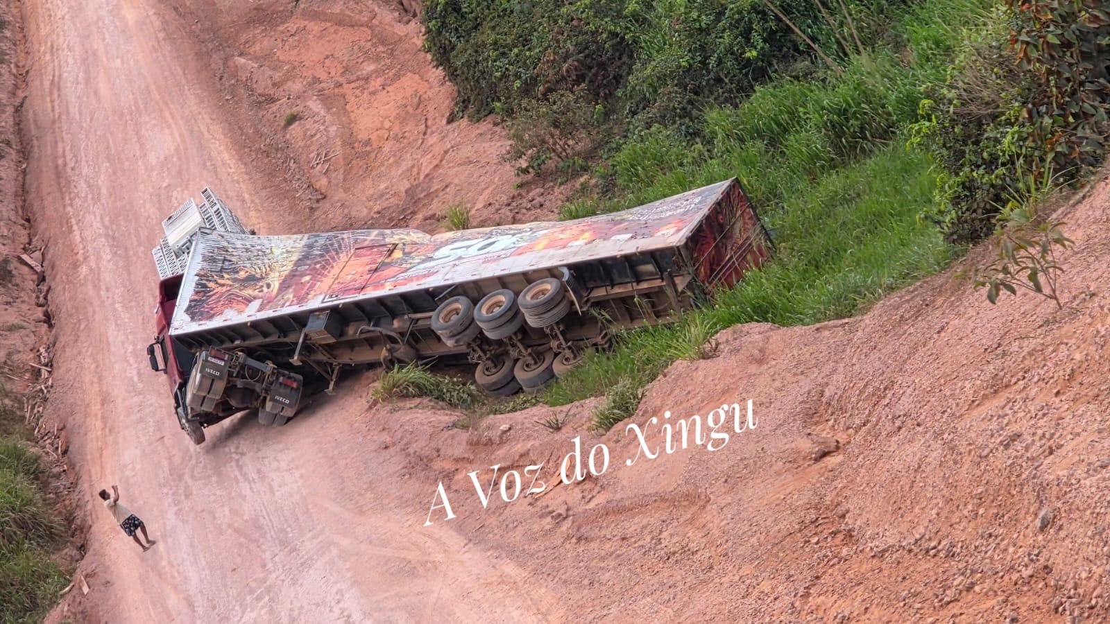 Uma carreta que transportava uma aparelhagem de som tombou na noite desta segunda-feira (2.fev.2026) na PA-167, na zona rural do município de Senador José Porfírio, no sudoeste do Pará. O veículo caiu em uma ribanceira enquanto retornava para Belém após participação no Festival do Caratinga.
