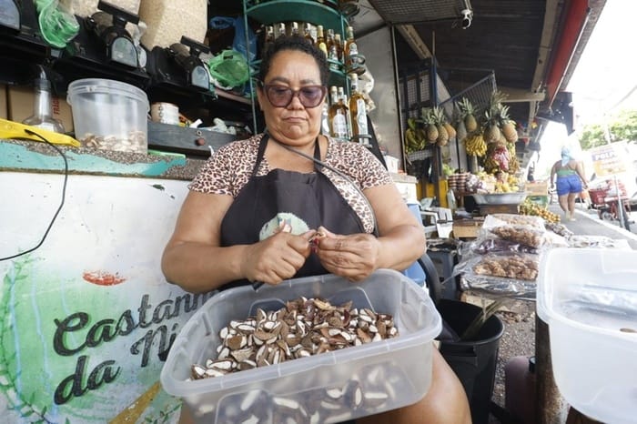 “É bom demais, né? As pessoas vão valorizar mais a castanha, não só como uma comida típica, mas também no dia a dia. Isso pode ajudar até a aumentar as vendas, tanto aqui quanto pra fora”, comentou Evanilson Santos, que há seis anos vende o produto na feira. Ele aprendeu o ofício com a sogra, que atua no mesmo local há mais de quatro décadas.