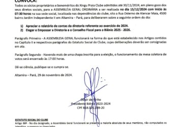 Altamira Xingu Praia Clube: Edital de Convocação nº 001/2025-2026by Wilson Soares 4 de dezembro de 2025
