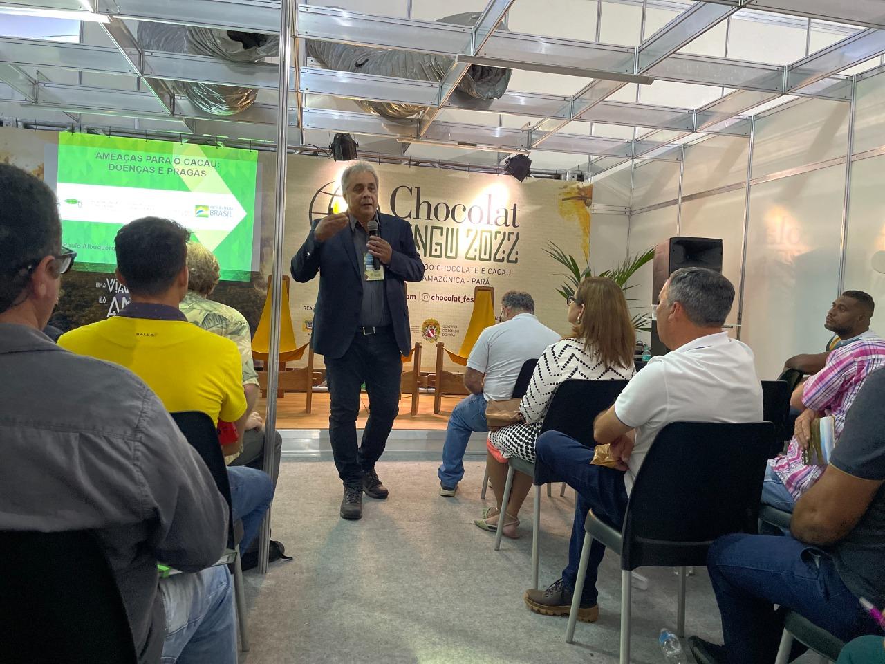 O auditório Sustentabilidade foi palco dos principais debate do dia, entre eles, “Futuro do cacau no Pará”; “O cacau no Brasil e no mundo”; “Ameaças para o cacau com pragas e doenças”; “IGs, selos e marcas fazendo a diferença na valorização do cacau” e “Negociando com o comércio”, reunindo palestrantes renomados a nível regional, estadual, nacional e internacional, como Fernando Mendes (Ceplac), Cley Gordon (EUA), Paulo Albuquerque (Ceplac), Marcia Tagore (Governo do Estado) e Jedielcio Oliveira (CEPOTX), que compartilharam suas experiências com o cacau.