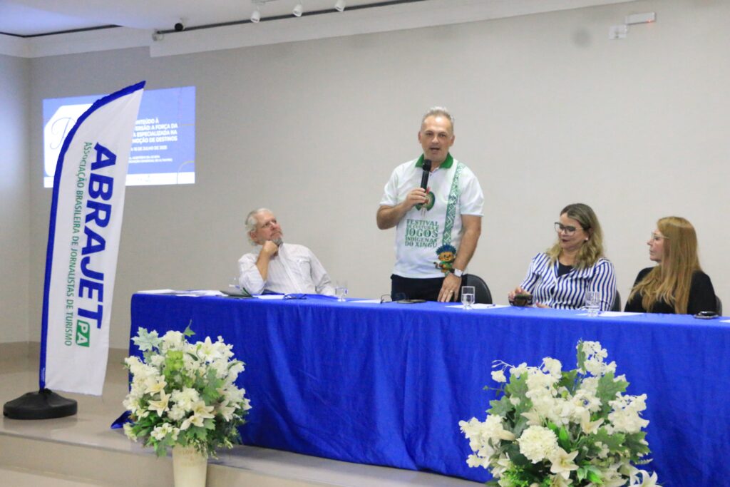 Também presente, o comunicador Wilson Soares, diretor da Abrajet-Pará e membro da diretoria nacional da entidade, fez uma breve explanação sobre o potencial turístico da região do Xingu, que abrange dez municípios. “Apenas 10% do nosso potencial é explorado. Há muito ainda a ser mostrado. A mídia especializada é uma aliada fundamental nesse processo de divulgação. Já temos eventos consolidados, como os torneios de pesca esportiva e o Festival do Chocolate, mas ainda há muito a ser desenvolvido”, ressaltou o jornalista, que dirige a TV Vitória – afiliada à Record TV – e o portal A Voz do Xingu.