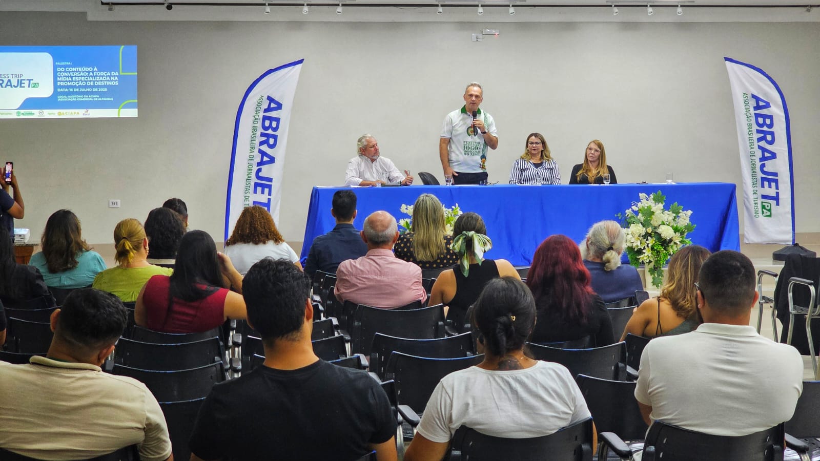 Na noite desta quarta-feira (16/7), o auditório da Associação Comercial, Industrial e Agropastoril de Altamira (Aciapa) foi palco de um encontro marcado por debates e trocas de experiências sobre o turismo regional e o papel da mídia especializada na promoção de destinos. O evento contou com a presença de jornalistas da Associação Brasileira de Jornalistas de Turismo (Abrajet), autoridades municipais, representantes da Norte Energia – responsável pela Usina Belo Monte –, empresários do trade turístico, comunicadores locais e convidados.