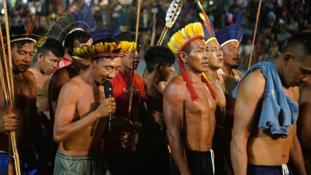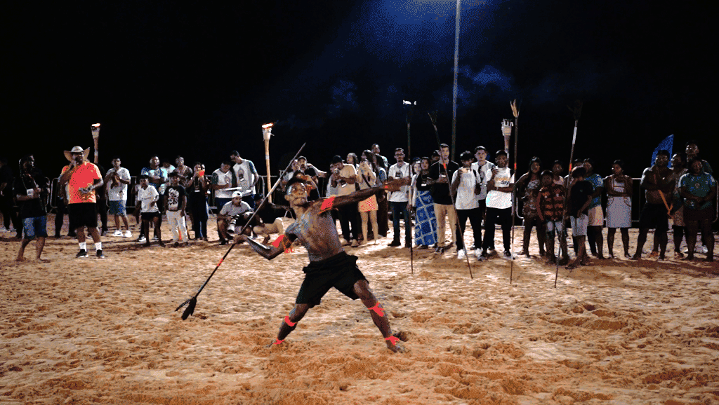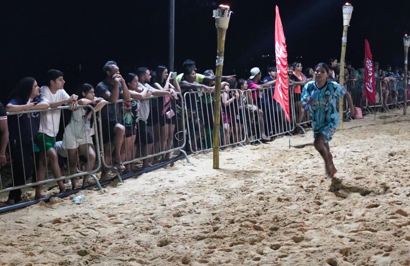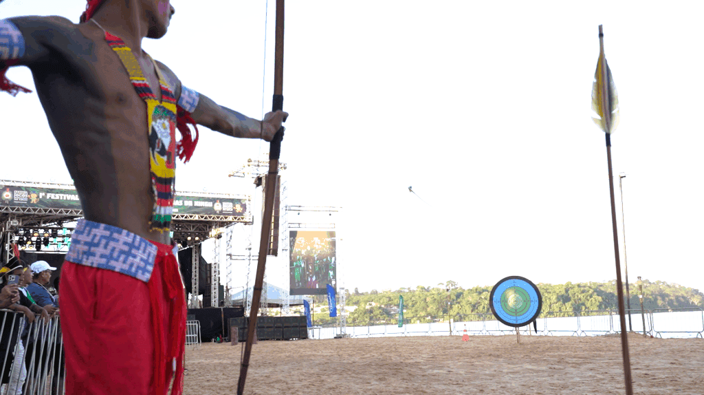 Além das provas de arco e flecha e arremesso de lança, a tradicional corrida de bastão também movimentou a Arena de Jogos e empolgou o público presente. A modalidade, que exige trabalho em equipe, agilidade e resistência, simboliza a união e o espírito coletivo das aldeias.
