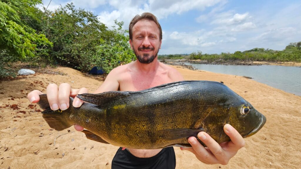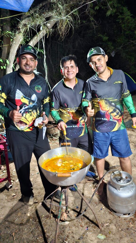 Grande parte dos peixes fisgados é devolvida à natureza, mas alguns são preparados no próprio acampamento para o consumo do grupo. No cardápio, moqueca de tucunaré, carnes assadas e pratos típicos.