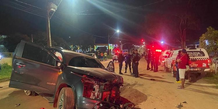 Ainda durante a madrugada, por volta das 2h50, a PM recebeu informações de que a caminhonete roubada estaria na Praça do Skate, no bairro Nova República. Uma equipe foi ao local, mas não encontrou o veículo. Em seguida, novas notificações indicaram que o automóvel circulava pela avenida Moaçara, no bairro Diamantino. Equipes do 35º BPM passaram a acompanhar a caminhonete e, próximo a um supermercado na Moaçara, um dos pneus estourou. O motorista perdeu parcialmente o controle da direção, mas manteve a fuga em alta velocidade até que, no cruzamento com a avenida Dom Frederico Costa, o veículo capotou.