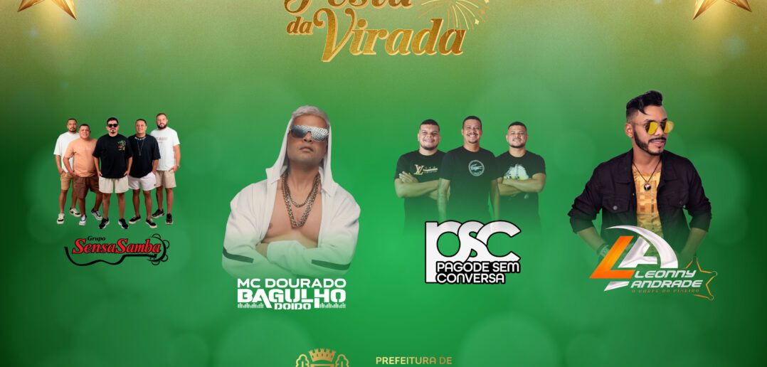 Logo após, às 00h10, o público retorna à Concha Acústica para acompanhar o show da atração principal da Festa da Virada: MC Dourado, conhecido nacionalmente como o “Rei do Bagulho Doido”.