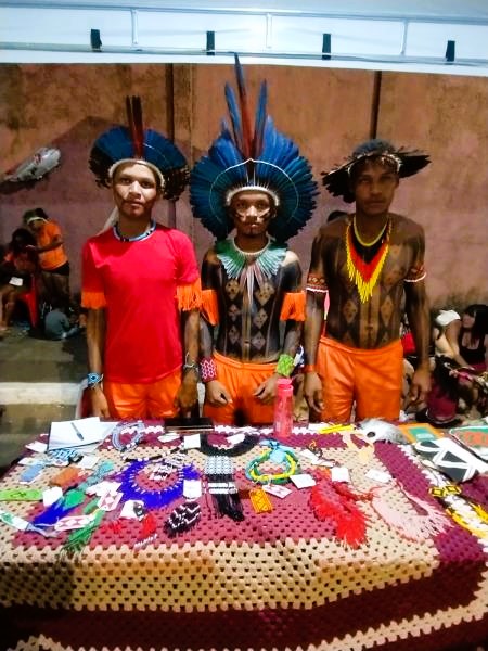 Irmãos Torotji Arara, Diego Arara e Orodjãn – Arara na venda de artesanato no festival. Foto: Benigna Soares.