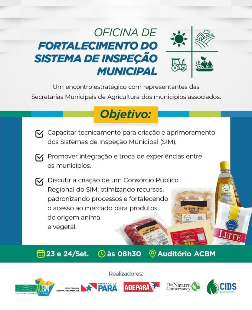 Nesta terça-feira (23 de setembro), Altamira sediará um encontro estratégico voltado ao fortalecimento do Sistema de Inspeção Municipal (SIM). O evento, que reunirá representantes das secretarias municipais de Agricultura da região da Transamazônica e Xingu, terá início às 8h30, na sede da Associação dos Municípios do Consórcio Belo Monte (ACBM).