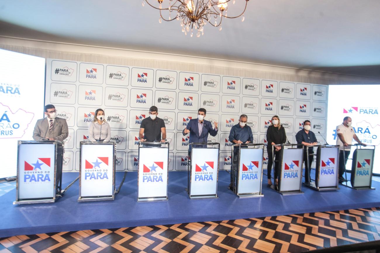 A coletiva contou com as presenças de cinco prefeitos da Região Metropolitana: Edmilson Rodrigues, de Belém; Daniel Santos, de Ananindeua; Luziane Solon, de Benevides; Patrícia Mendes, de Marituba, e Marcus Leão, de Santa Bárbara do Pará, além do secretário de Estado de Saúde Pública, Rômulo Rodovalho, e do reitor Marcel Botelho, da Universidade Federal Rural da Amazônia (Ufra).