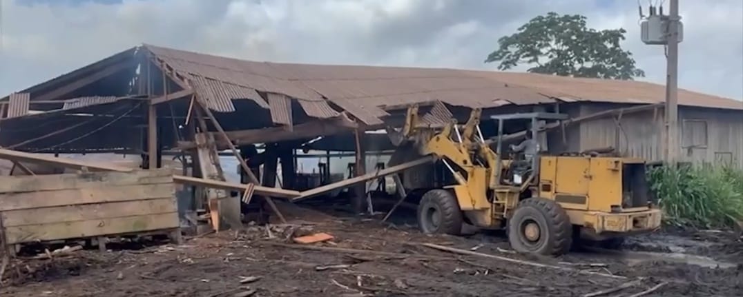 Durante a operação, estruturas como barracões e equipamentos usados para beneficiar a madeira foram destruídos.