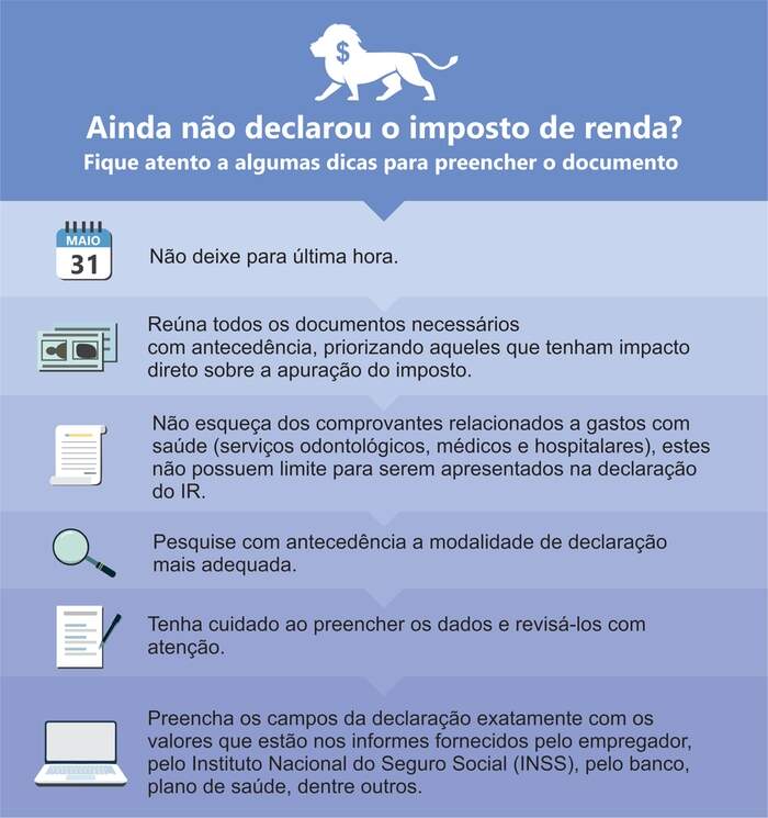 Deixar para declarar o Imposto de Renda em cima da hora é arriscado, como explica o contador Lamark Santos. “Preencher a declaração do Imposto de Renda é simples, mas demanda atenção redobrada, tanto para quem escolhe o modelo simplificado quanto para quem opta pelo modelo completo para relacionar todos as despesas dedutíveis do imposto. Como diz o ditado, a pressa é inimiga da perfeição e, em se tratando de imposto de renda, qualquer centavo preenchido errado, para mais ou para menos, pode levar o contribuinte à malha fina, o que o obriga a se apresentar pessoalmente ao Fisco”, pontua.