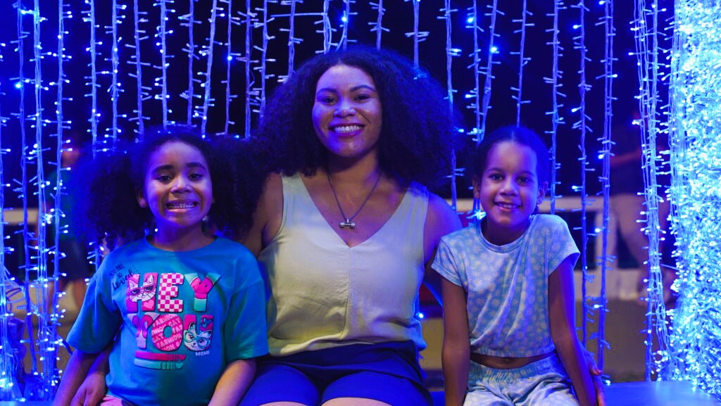 E se a iluminação conquistou os adultos, as novas atrações fizeram sucesso entre as crianças. A advogada Graziela Matias, que levou a filha e uma amiguinha, se encantou com o clima criado na Orla e na Praça do Mattias. “Eu achei tudo muito lindo, tudo muito encantador. Os brilhos, as luzes, aquele urso de pelúcia onde as crianças tiram foto… tudo muito legal”, disse. “Eu trouxe a minha filha e a coleguinha dela. Elas estão tirando foto de tudo, brincando, aproveitando cada parte da decoração. Aquele urso grandão… não queriam sair de lá de jeito nenhum!”