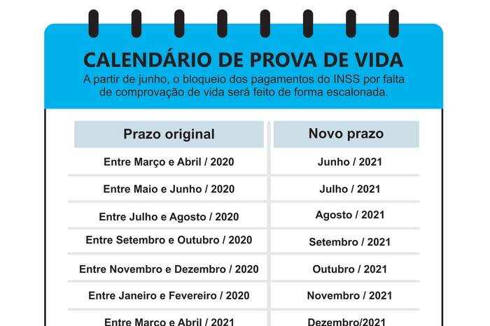 A comprovação para os aposentados do INSS pode ser feita pela internet, pelos aplicativos “Meu INSS” e “Meu Gov.br” e no banco em que a pessoa recebe o benefício. No novo calendário do Instituto, beneficiários que tinham previsão de fazer a prova de vida em fevereiro do ano passado precisam cumprir a obrigação até o dia 31 de maio deste ano. Aqueles com calendário inicial previsto para março e abril de 2020 têm até junho para fazer a prova.