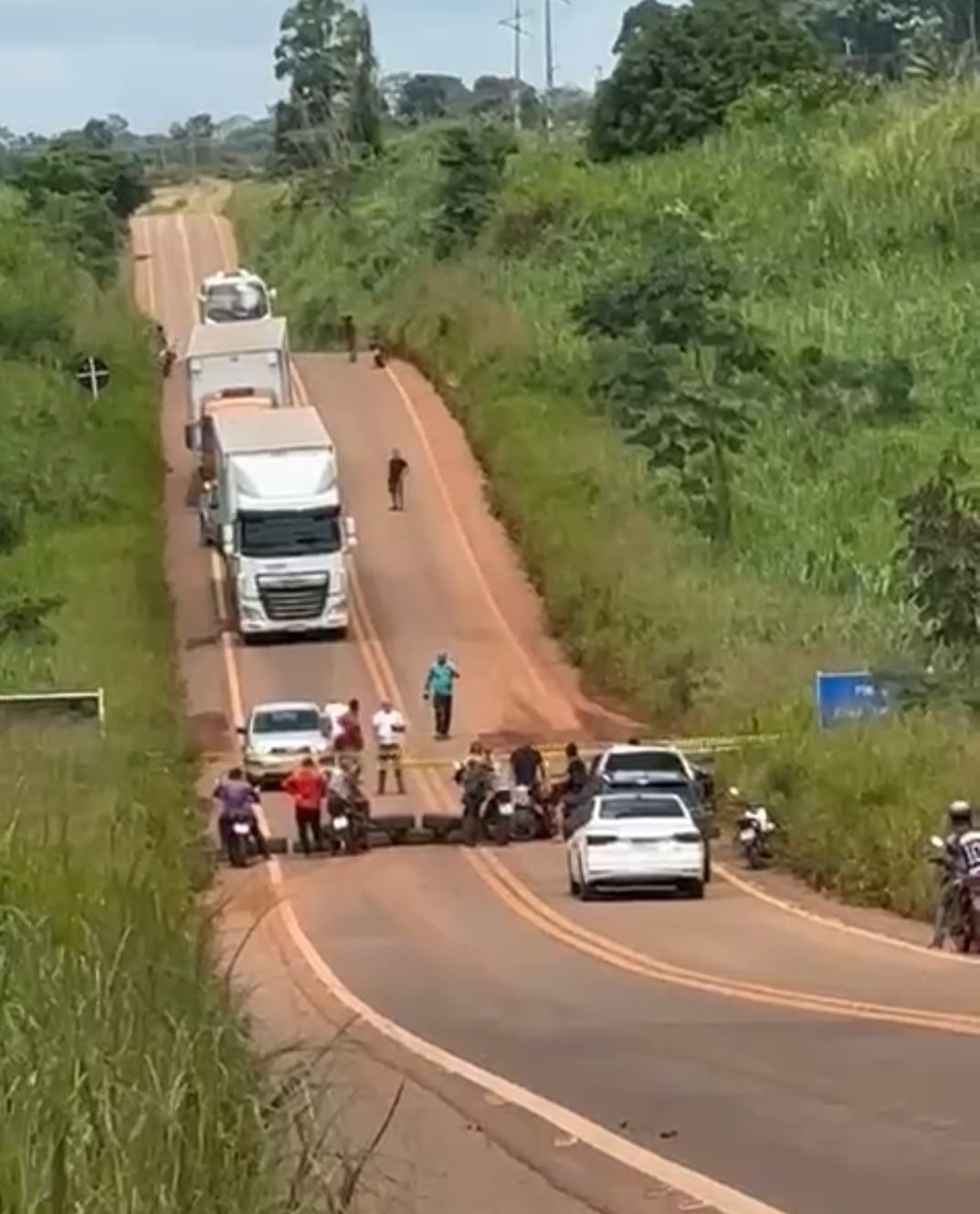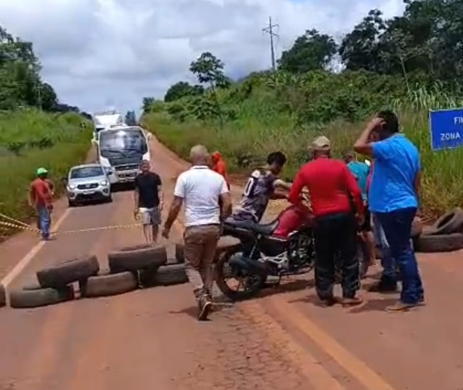 Logo após o acidente, moradores da Comunidade Nova Fronteira bloquearam a rodovia federal com pneus e pedaços de madeira. O protesto tem como objetivo cobrar do Departamento Nacional de Infraestrutura de Transportes (Dnit) a instalação de um redutor de velocidade no local.