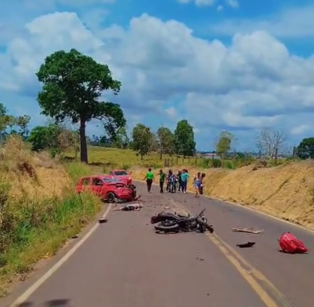 Com o impacto, o condutor da motocicleta foi arremessado ao chão e morreu ainda no local. Peças do veículo ficaram espalhadas pela pista. Já o carro envolvido no acidente teve a parte frontal completamente destruída.