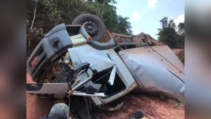 O motorista do caminhão baú que tombou no acidente que aconteceu durante a tarde da última quarta-feira (28) no Km 302, Rodovia Transamazônica sentido Jacareacanga, faleceu ainda no local. Segundo informações, o veículo estaria vindo de Ji – paraná com destino à cidade de Apuí, no Amazonas.