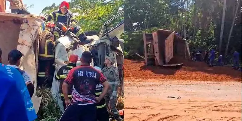 O motorista da caçamba ficou preso na cabine e sofreu graves ferimentos na cabeça, além de fraturas expostas no braço e na perna. Testemunhas acionaram o Corpo de Bombeiros, que constatou que a vítima estava presa às ferragens. Ao ser retirado e levado ao hospital, o condutor estava consciente. Não há mais informações sobre o estado de saúde do condutor após dar entrada na unidade de saúde.