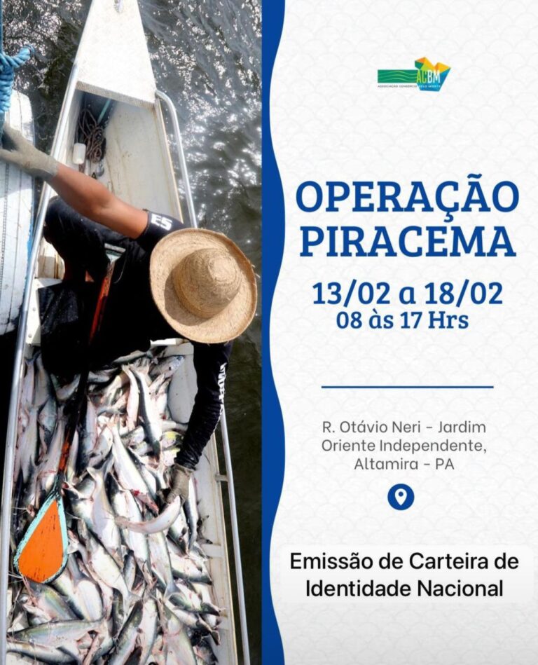 A operação conta com o apoio da Associação dos Municípios do Consórcio Belo Monte (ACBM) e tem como principal objetivo garantir a regularização do documento, que é exigido para a manutenção do seguro-defeso durante o período da piracema — fase em que a pesca é proibida para assegurar a reprodução das espécies.