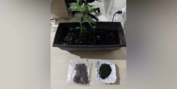 Segundo a PM, a planta estava exposta, aparentando estar em cultivo. Ao ser retirada, os policiais encontraram uma sacola contendo maconha escondida sob a muda.