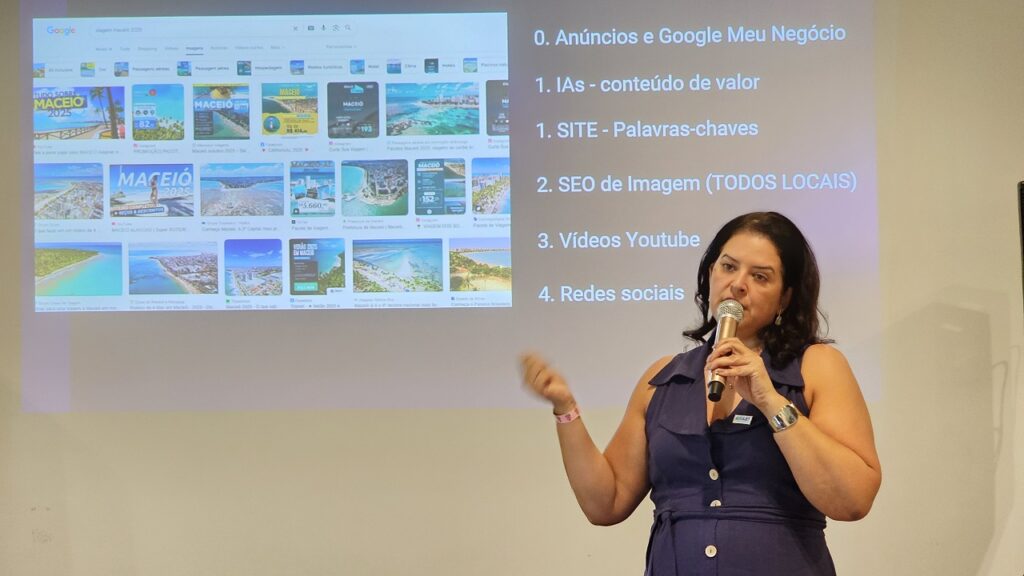 Durante a palestra, Vânia também reforçou estratégias práticas para ampliar a presença digital, como SEO de imagens, tanto nos portais, quanto nas redes; Branded content como forma de trabalhar alinhado às assessorias e dar visibilidade instituto; Google Meu Negócio e o uso de plataformas como YouTube, TikTok e Pinterest para fortalecimento da audiência.