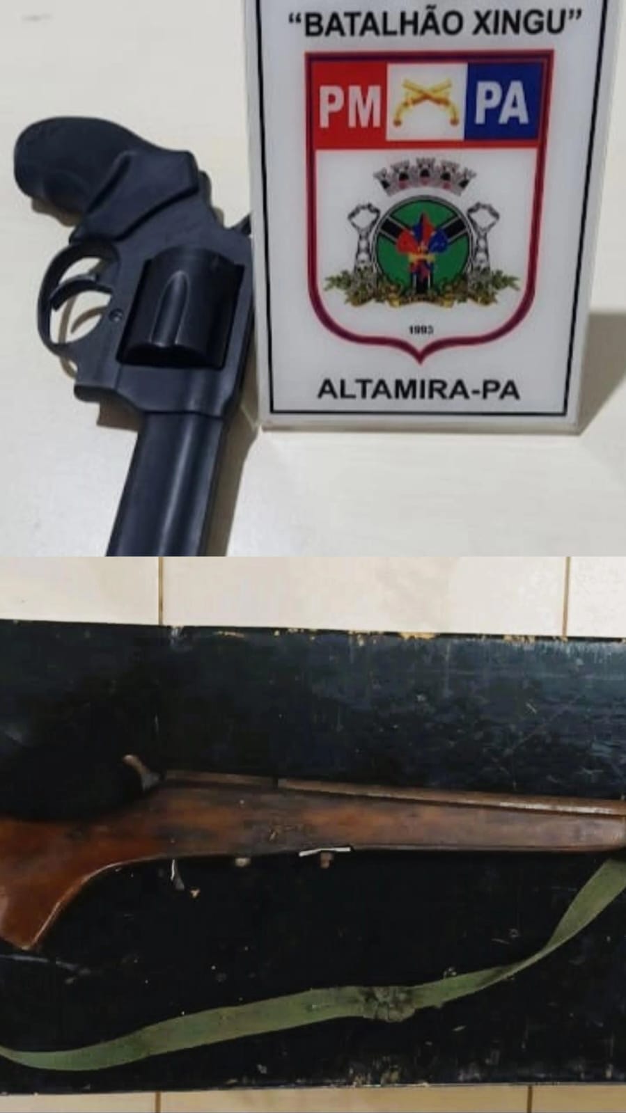 PM apreende revólver e espingarda e conduz dois homens à delegacia em Altamira