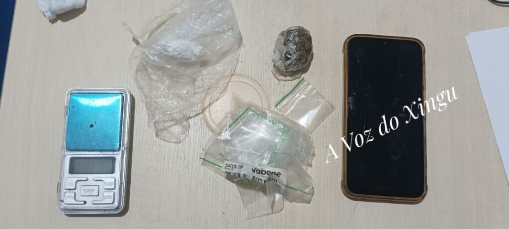 A guarnição se dirigiu ao endereço indicado e encontrou o suspeito no local. Identificado como Júlio Neto Barbosa Mendes, o acusado confessou ser o dono da droga e disse ainda que Gabriel — que havia deixado seu celular no local e fugido antes da chegada da polícia — seria seu sócio na venda dos entorpecentes.