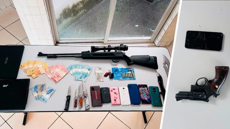 Em outro endereço, um homem foi preso em flagrante por posse irregular de arma de fogo. No local foram apreendidos uma motocicleta com chassi adulterado, diversos aparelhoes celulares, dois notebooks e seis munições intactas de calibre 38.
