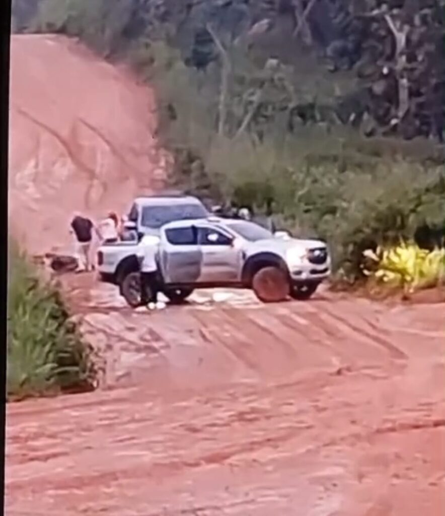 Imagens que circulam na internet mostram duas caminhonetes paradas no meio da estrada e, em seguida, o gestor sendo empurrado ao chão durante a discussão. De acordo com informações preliminares, o prefeito teria sido agredido pelo próprio filho. A confusão também teria envolvido a esposa do prefeito e uma servidora pública municipal.