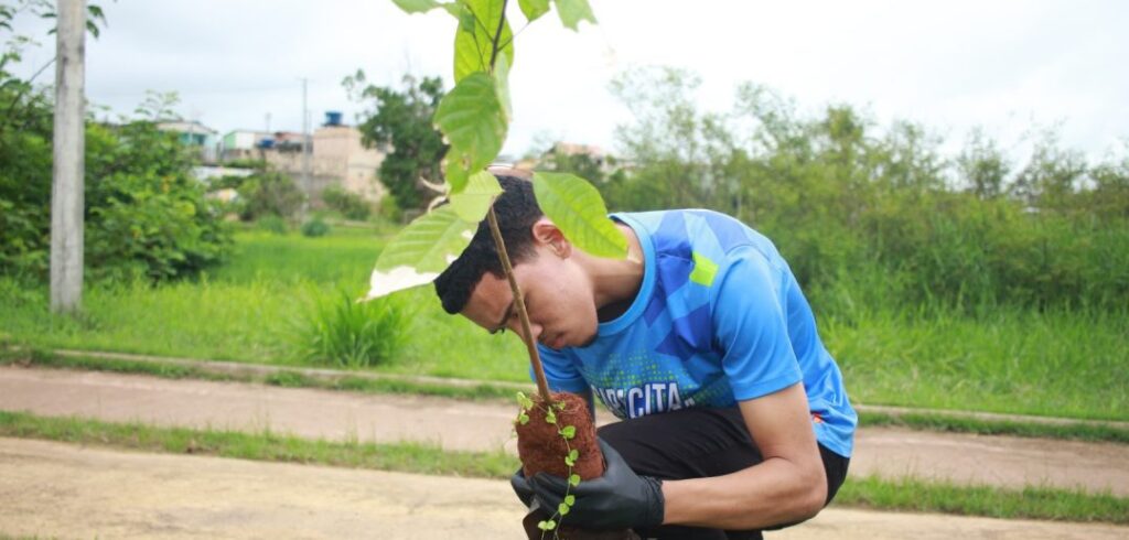 Secretário Municipal de Gestão do Meio Ambiente, Rafael Oliveira, durante ação de arborização.