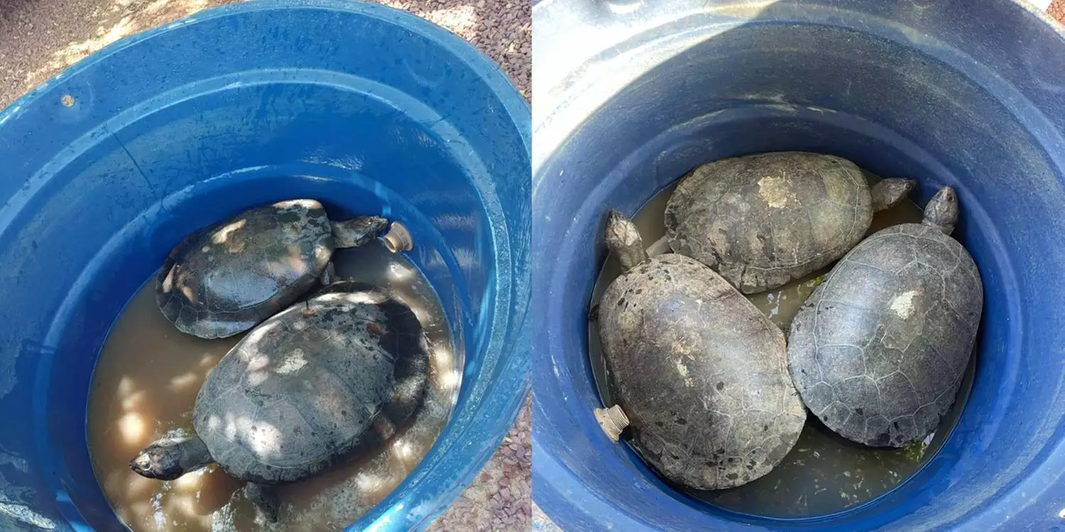 Após a inspeção da carga, foram encontradas dez tartarugas-da-amazônia (Podocnemis expansa) sendo transportadas dentro de sacos de rafia, em evidente situação de maus-tratos. Além disso, o condutor não possuía nenhum documento ambiental que comprovasse a legalidade dos animais.