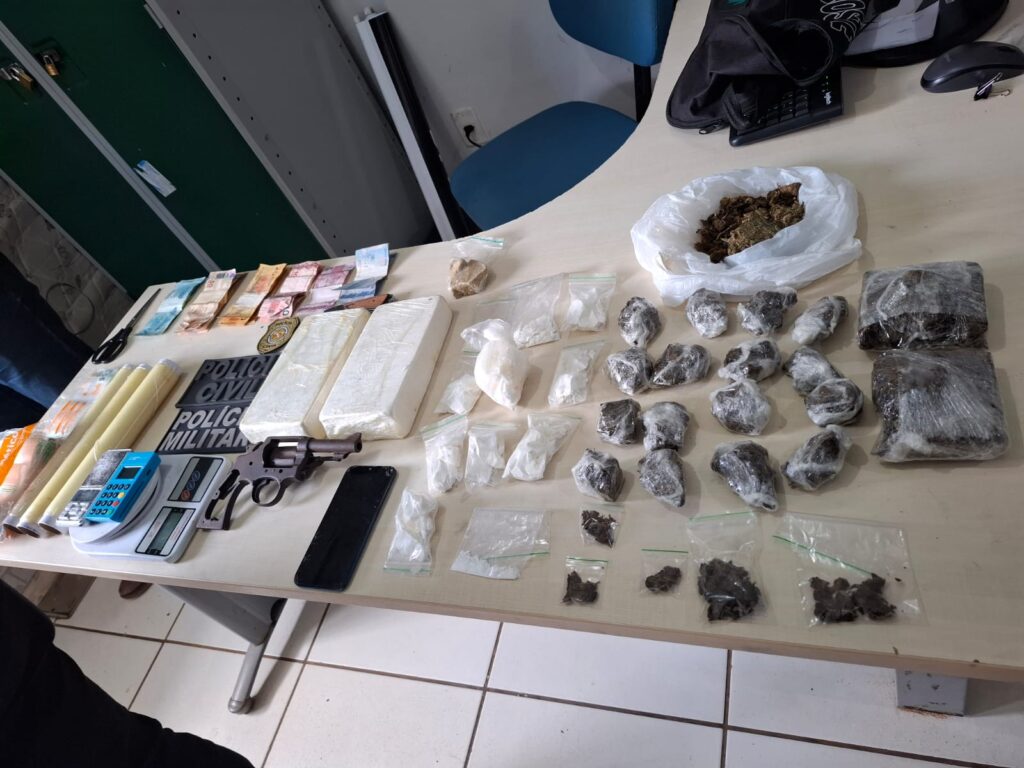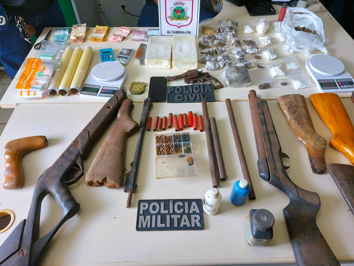 A operação, realizada em conjunto pelas polícias Civil e Militar, apreendeu na residência onde os três estavam, que, segundo a polícia, funcionava como um ponto de venda de entorpecentes, cerca de 1 kg de maconha, dividida em diversas porções menores, 2,258 kg de cocaína, 100 gramas de oxi, um revólver calibre .38, diversos materiais usados para embalar a droga, balanças de precisão, várias coronhas de madeira fabricadas artesanalmente, além de canos de espingardas e máquinas utilizadas na fabricação caseira de armas de fogo.
