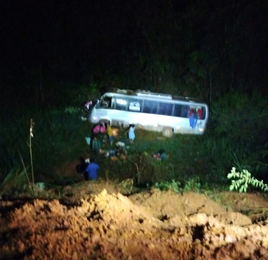 Um micro-ônibus que presta serviço para a Secretaria Municipal de Saúde de Uruará tombou quando retornava de Altamira, transportando pacientes que realizam tratamento de hemodiálise no Hospital Regional da Transamazônica.