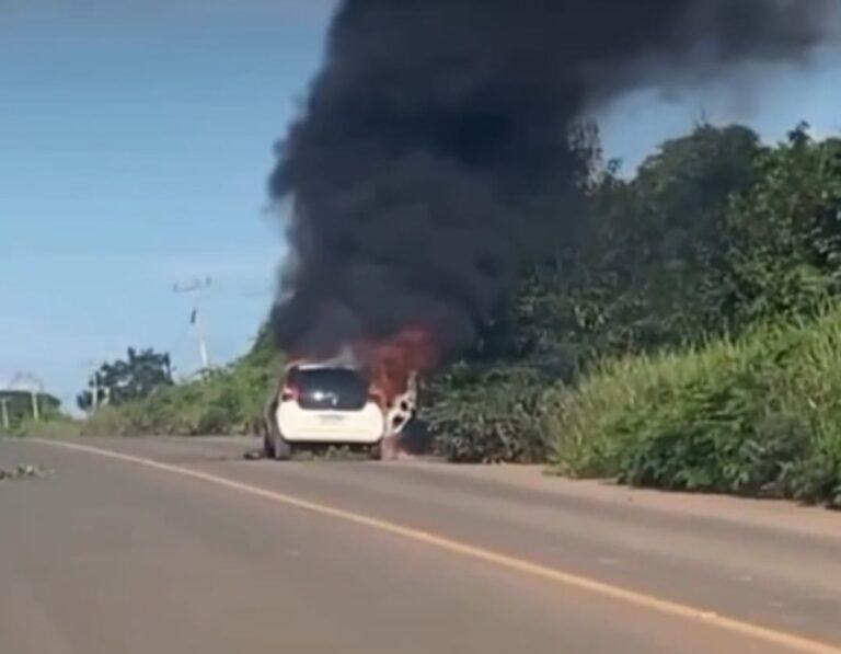 Um veículo de passeio foi completamente destruído por um incêndio enquanto trafegava pela BR-230, a Rodovia Transamazônica. O caso ocorreu no domingo, (21.dez.2025), em um trecho conhecido como Curva da Morte, na região do município de Placas, no sudoeste do Pará.