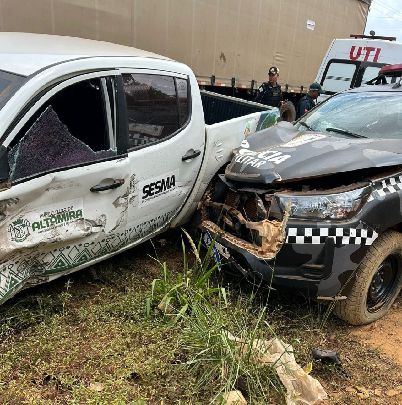 Um acidente envolvendo uma viatura da Polícia Militar e uma caminhonete da Secretaria Municipal de Saúde (Sesma) de Altamira foi registrado por volta das 10h30 desta terça-feira (14/10), na BR-230, no trecho que corta o bairro Liberdade.